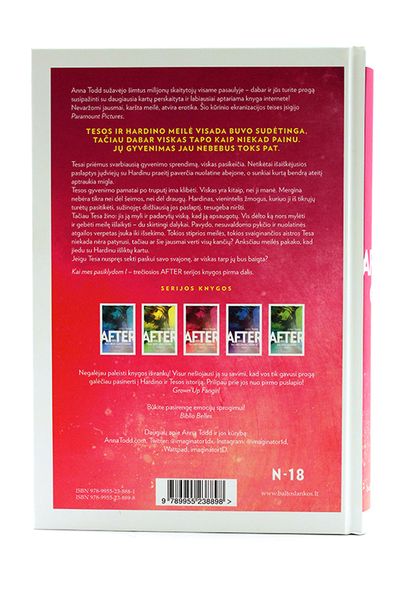 Tačiau Tesa žino: jis ją myli ir padarytų viską, kad ją apsaugotų. Vis dėlto ką nors mylėti ir gebėti meilę išlaikyti – du skirtingi dalykai. Pavydo, nesuvaldomo pykčio ir nuolatinės atgailos verpetas įsuka iki išsekimo. Tokios stiprios meilės, tokios svaiginančios aistros Tesa niekada nėra patyrusi, tačiau ar šie jausmai verti visų kančių? Anksčiau meilės pakako, kad jiedu su Hardinu išliktų kartu.