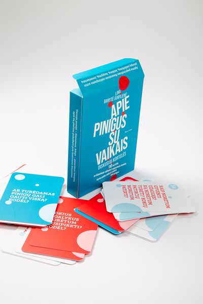 Diskusijų kortelės „Apie pinigus su vaikais“ padės pinigų temą lengvai ir paprastai įtraukti į šeimos kasdienybę. Jums tereikia vaikui tinkamu metu pasiūlyti ištraukti vieną ar kelias korteles, užduoti klausimą, išklausyti jo atsakymą ir padiskutuoti.