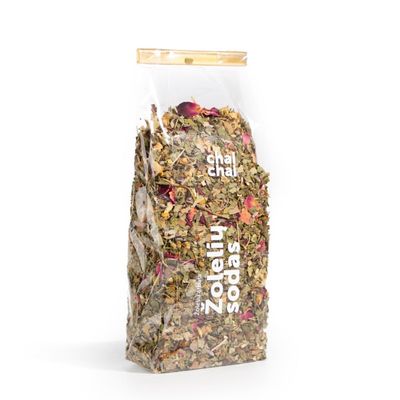 „Žolelių sodas“ – išskirtinių, kruopščiai atrinktų žolelių ir žiedlapių mišinys, stebinantis savo mėtine gaiva ir užburiantis sodo gėlių kvapais. Papuoštas rožių žiedlapiais ir levandomis pabudins šiltus vasaros prisiminimus, o vakarais nuramins ir padės lengviau užmerkti akis. Rekomenduojame visiems mylintiems gamtą ir natūralumą.