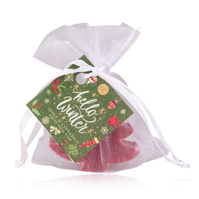Elegantiškame organzos maišelyje supakuotas, eglutės formos, avies pieno muiliukas. Puikus priedas prie dovanos.