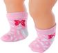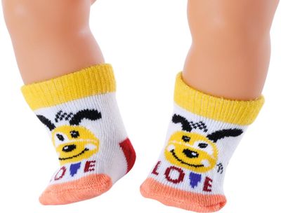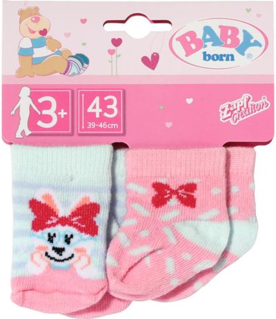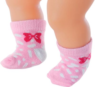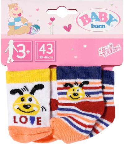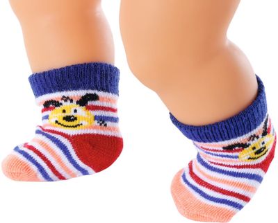 Sveikas atvykęs į Baby Born pasaulį. Tai kūrybiškų, smagių ir spalvingų žaidimų šalis, kurioje žaisti niekad nepabosta! Vieną dieną lėlytė Baby Born yra kūdikis, kuriam reikia tavo priežiūros, kitą dieną – draugė ir tikroviškų nuotykių bendražygė. Ar kojinių nykštukas vėl paslėpė visas kojines? Nesvarbu, nes lėlytė Baby Born turi naujas, ir netgi dvi poras! Asortimente – 2 kojinyčių variantai: rožinės ir žydros su triušiuku ir mielais kaspinėliais arba ryškių spalvų dryžuotos, su linksmu šuniuku. Kokybiškos, lengvai užmaunamos ir nuimamos kojinytės tinka 43 cm lėlytėms, su jomis žaidimai taps dar įdomesni, smagesni ir tikroviškesni.