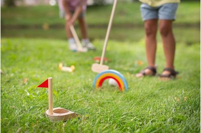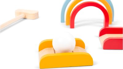 Medinis golfo rinkinys smagiems lauko žaidimams. Suburk draugus ir surenk čempionatą tiesiog savo kieme!
