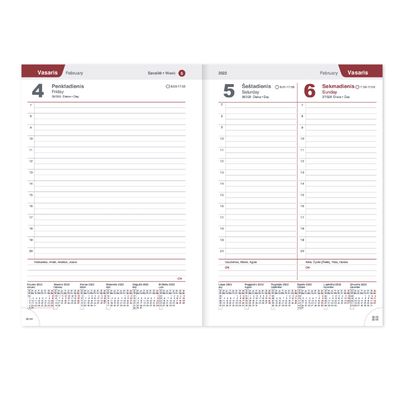 Darbo knyga-kalendorius skirtas detaliam dienos darbų ir susitikimų planavimui. Vienas puslapis skirtas vienai dienai.