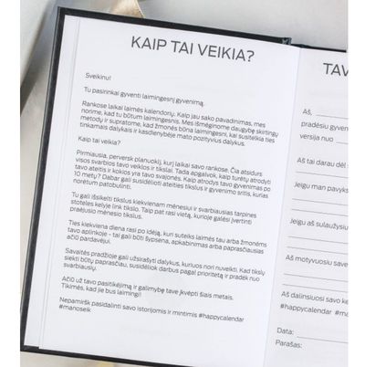 Laimės Kalendorius – tarsi kvietimas į gyvenimą keičiančią kelionę. 365 dienas pateiktos mažos užduotys padės pamatyti pozityvumą aplinkui, paversti dienas kupinomis nuotykių ir pradėti nuo paprastų žingsnių tausojant gamtą. Į darbų planuoklį galite užsirašyti savo kasdienę veiklą nuo 2024 m. gruodžio mėnesio iki 2025 m. pabaigos. Čia yra vietos susirašyti savo savaitės užduotims. Be to, išskirti ir retrospektyviniai puslapiai, kurie skirti analizuoti savo sėkmę. Šis dienoraštis suteikia jums įrankius, kuriuos galite pradėti naudoti iš karto, kad darbas ir asmeninis gyvenimas lengvai derėtų, o jūs spindėtumėte energija. Linkime, kad metai būtų įdomūs, kupini nuotykių ir kad turėtumėte laiko pasimėgauti savo tobulėjimo kelione.