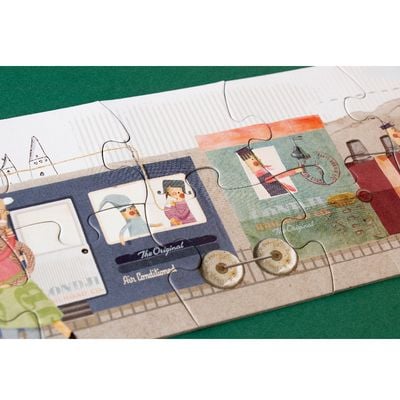 Šios dėlionės iliustracijoje atvaizduotas traukinys, o kiekviename vagone gyvena daugybė personažų, kurie pradžiugins mažuosius.