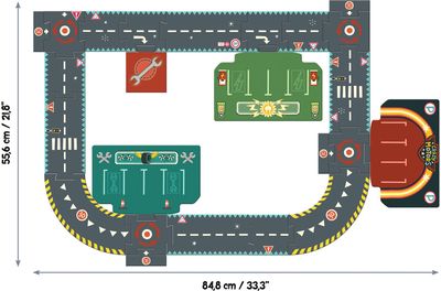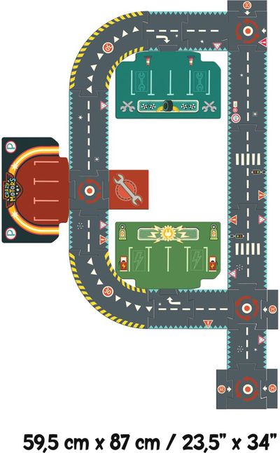 Milžiniška dėlionė-žiedas (87 x 55 cm) iš 24 dalių, skirta sudėlioti įvairius kelius ir žaisti su automobiliais. Tai didelė ir puiki dėlionė skirta kiekvienam vaikui, kuris mėgsta žaisti su automobiliais. Sudėliojus, ją galima panaudoti kaip kelių sistema. Ji pagaminta iš ypač tvirto kartono. Storo kartono dėlionė su didelėmis, lengvai laikomomis rankose dalimis.