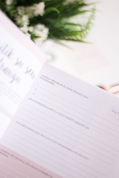 • Kasdien užrašyk dalykus, kurie tave pradžiugino, dėl ko jauteisi dėkinga, kokio džiugaus momento nenorėtum pamiršti?