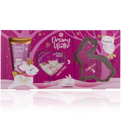 Dovanų rinkinys DREAMY WINTER (rankų kremas+rankšluostukas+sausainių formelė)