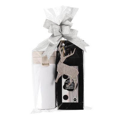 Šventinis dovanų rinkinys, susidedantis iš termosinio puodelio bei kavos arba arbatos. Termosas pagamintas iš nerūdijančio plieno, jo dangtelis - iš polipropileno. Termosinio puodelio talpa yra 360 ml.