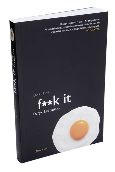 F**k It. Daryk, kas patinka. Mesk teisės studijas ir tapk virtuvės šefu. Atsisakyk paaukštinimo darbe ir praleisk daugiau laiko su šeima. Daryk, kas patinka. Piešk per priešpiečius. Dainuok nuoširdžiai džiaugdamasis. Daryk, kas patinka. Nustok pardavinėjęs tai, ko žmonėms nereikia, ir daryk masažus, kad žmonės pasijustų geriau. Daryk, kas tau teikia palaimą, nes gyvenimas yra trumpas. Užsisakyk kavos ir sukurk svajonių verslo planą. Plauk banglente. Rašyk poeziją. Daryk mažiau, uždirbk mažiau, planuok mažiau, galvok mažiau, kalbėk mažiau. Daryk, kas patinka. Juokis daugiau, verk daugiau, šok daugiau, mylėk daugiau, prarask daugiau, būk su savimi daugiau. Daryk, kas patinka. Atiduok nereikalingus daiktus labdarai. Pirk tai, kas patinka. Sukurk dainą, praktikuok jogą, rašyk tikrus laiškus ant tikro popieriaus tikru rašalu. Daryk, kas patinka. Išdrįsk palikti savo ženklą. Pasitrauk į šalį ir stebėk praeinančią akimirką. Įsiklausyk į save ir tada kalbėk su kitais. Išklausyk kitus, tada... daryk, kas patinka. F**k It. Paprasčiausiai daryk, kas patinka.