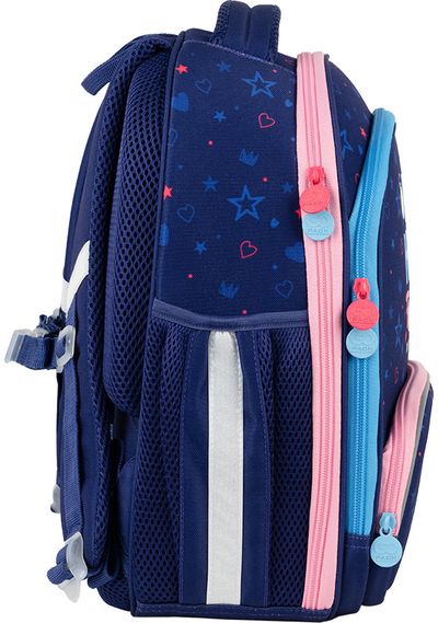 Patogi kuprinė su 2 šoninėmis kišenėmis vandens buteliukui, pagrindiniu talpiu skyriumi didesniems daiktams, kompiuteriui, knygoms ir priekine kišene patogia smulkiems daiktams.