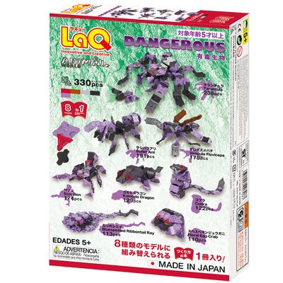 Konstruktorius „LaQ Dangerous“ – tai net 8 grėsmingų gyvūnų rinkinys iš kurio galima sukonstruoti vorą tarantulą, vapsvą, „Komodo“ drakoną, skruzdėlę „kulką“ ir kitus pavojingus pasaulio gyvūnus. Rinkinys yra išskirtinis dėl jame vyraujančios naujos LaQ detalių levandų spalvos.
