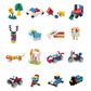 - 20 konstravimo schemų: įvairios mašinos, didelis robotas, sūpynės, ir kiti įdomūs modeliai;
