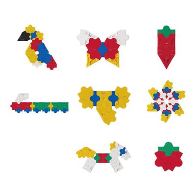 Modeliai, kuriuos sukonstruosite: traukinukas, sraigė, gėlė, arkliukas, lėktuvas, mašinėlė, karuselė, krokodilas ir kt.