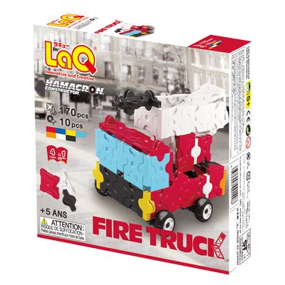 LaQ Hamacron Constructor Fire Truck – tai transporto priemonių, kurių realybėje paprastai prireikia gaisrininkams vykstant į gaisro vietą, modelių rinkinys: gaisrinės ir greitosios pagalbos automobilių bei policijos automobilio ir motociklo. Todėl vaikai, sukonstravę šiuos 7 spalvų žaislus, galės režisuoti įvairias gaisrų gesinimo ir gelbėjimo situacijas bei prasmingai ir šauniai praleisti laiką. LaQ Fire Truck modeliai ypatingi tuo, kad jie turi net 10 specialiųjų LaQ Hamacron detalių – ratų ir juos tvirtinančių ašių. O žaisdami su ratuotais LaQ modeliais, vaikai atras puikią progą be didelių pastangų pajudėti ir pasimankštinti. „Gaisrinės“ konstruktoriaus žaidimas suburs ir mergaites, ir berniukus į komandinį darbą!