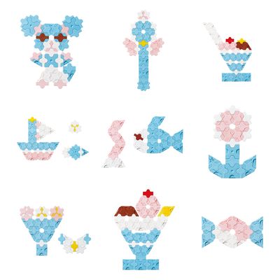 Su šiuo rinkiniu galima sukurti 9 skirtingus 2D modelius: ledinuką, skaniausių ledų porciją, peliuką Mikį, valtį su žuvimi, gėlę ir drugelį.