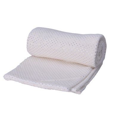 Baltas minkštas pledas su aukso spalvos taškelių raštu. Pledas pridės jaukumo ir šilumos kiekvienam švenčių vakarui, puikiai tiks ir kaip kalėdinė dovana artimam žmogui!