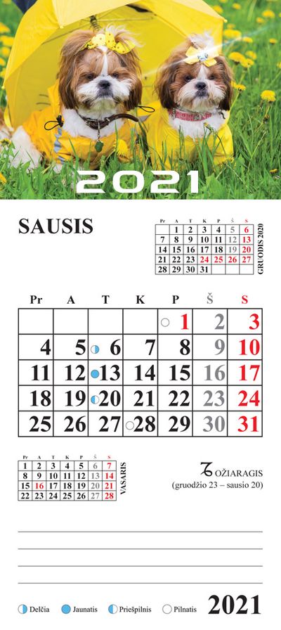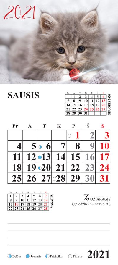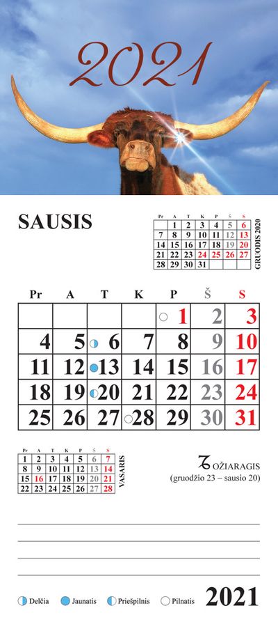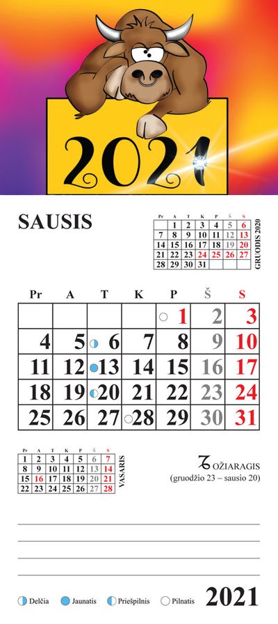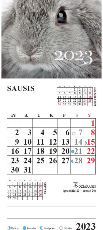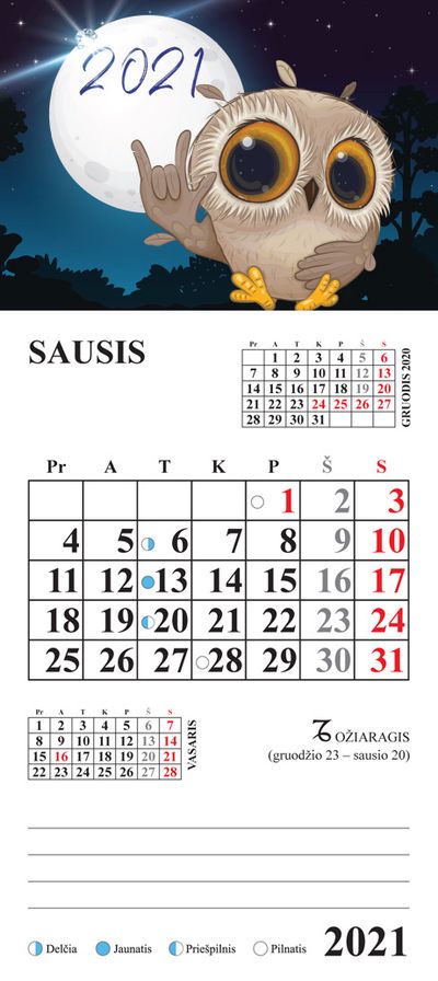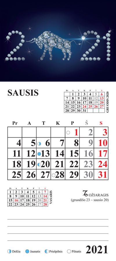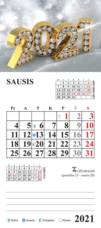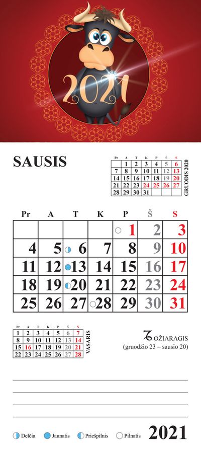 Dėmesio! Įvairūs dizainai. Kalendoriaus dizainas parenkamas atsitiktine tvarka.