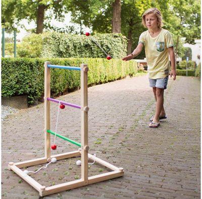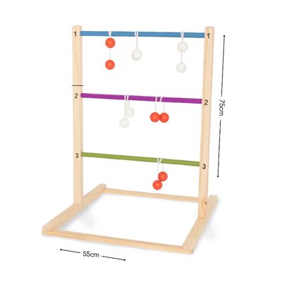 Meskite virvelę su kamuoliukais taip, kad ji apsivyniotų aplink pagaliukus ant kopėtėlių ir taip surinkite kuo daugiau taškų.