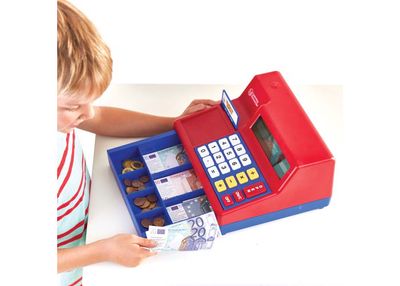 Kasos aparatas su skaičiuotuvu ir žaisliniais pinigais EUR