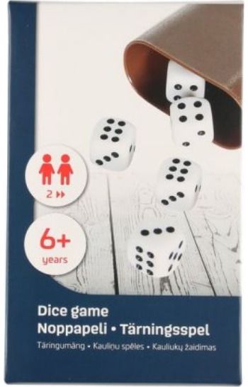 Pakuotėje yra 6 kauliukai, kauliukų taurė, taisyklės ir 50 balų lapų suomių, švedų, anglų, latvių ir lietuvių kalbomis.
