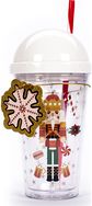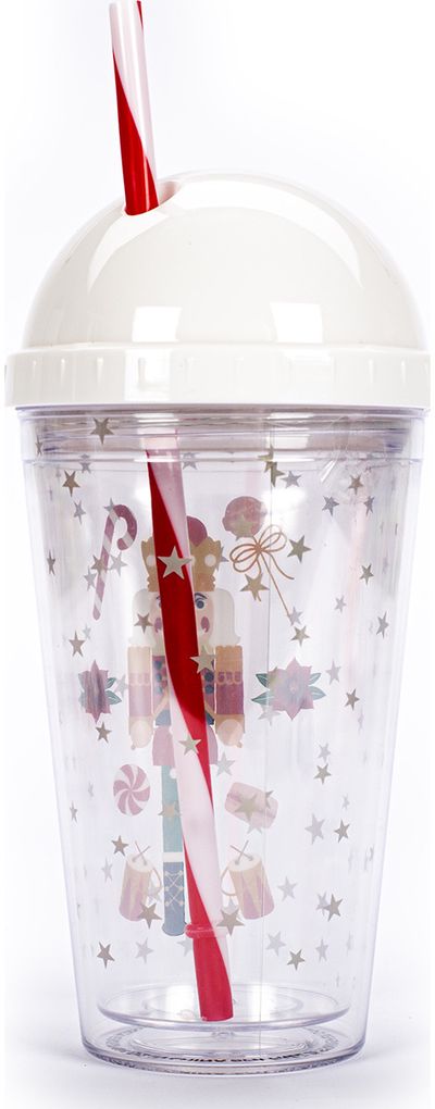 Patogus, šventinis puodelis su užsukamu dangteliu ir šiaudeliu.