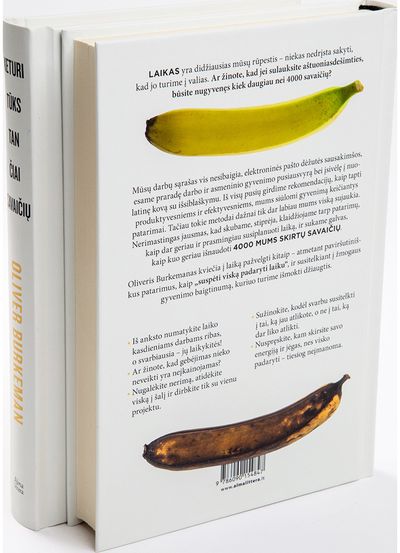 Oliveris Burkemanas, ne taip kaip Hararis, nėra mokslininkas. Jis – žurnalistas, daug metų rašęs savo skiltį „The Guardian“. Išleido ir kelias savipagalbos knygas, kurios buvo populiarios, bet toli gražu ne tokios populiarios kaip „Keturi tūkstančiai savaičių“. Šįkart autorius ne tik pataikė į laikmetį, kai visiems dienoje pritrūksta bent kelių valandų, bet ir fantastiškai atliko savo darbą.