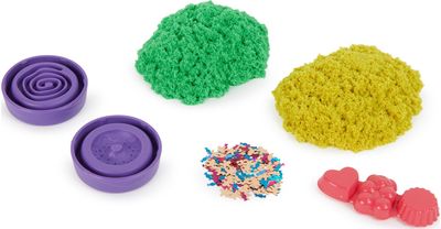 „Kinetic Sand“ – tai magiškas smėlis, kurio dalelės stebuklingai sulimpa viena su kita ir leidžia žaisti bet kur nepaliekant jokios netvarkos! Kinetinis smėlis niekada neišdžiūva, su juo galima žaisti vėl ir vėl! Rinkinys „Flowfetti“ – tai naujas, dar nepatirtas žaidimas su kinetiniu smėliu, kur susijungia smėlis ir blizgučiai! Perkelk kūrybiškumą į kitą lygį ir atskleisk dar neregėtas smėlio galimybes!