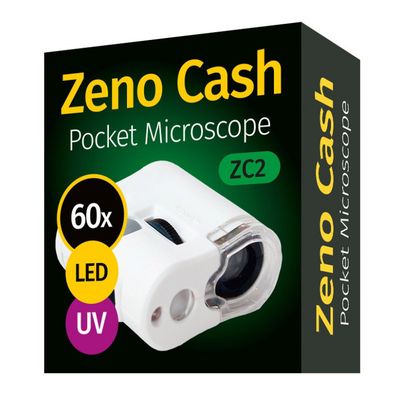 „Levenhuk Zeno Cash ZC2“ mikroskopas yra kišenės dydžio didinimo prietaisas su UV ir LED apšvietimu. Tai puikiai tinka tikrinant banknotų tikrumą profesinėje veikloje ir kasdieniame gyvenime. Nešiojamasis prietaisas turi lengvą ir kompaktišką plastikinį dėklą - patogu jį pasiimti į komandiruotes ir verslo susitikimus. Dėl apšvietimo iš poros klasikinių šviesos diodų, Levenhuk Zeno Cash ZC2 mikroskopas taip pat gali būti naudojamas įprastiems vizualiniams stebėjimams. Optikos padidinimas yra 60 kartų.
