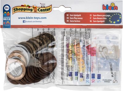 Vokiečių kalbą žodis „klein“ reiškia „mažas“. Būtent todėl „Klein“ gaminami žaislai yra sumažintos tikrų daiktų kopijos, kad vaikai galėtų išbandyti įvairias profesijas. Su šiuo žaislinių pinigų rinkiniu žaidimai taps dar tikroviškesni. Rinkinyje yra daugybė monetų ir banknotų, tad žaisti parduotuvę bus dar smagiau!