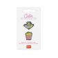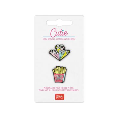 Dviejų metalinių klijuojamų ženkliukų rinkinys. Norint ženkliuką priklijuoti būtina nuplėšti apsauginę juostelę, padėti ženkliuką į norimą vietą, paspausti ir palaukti 10 minučių, kol visiškai prilips. Jais galite papuošti mobiliuosius telefonus, sąsiuvinius ar net krepšius!