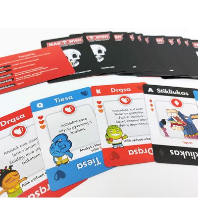MadWish“ – tai uždegantis, neturintis analogų vakarėlių žaidimas, kuriame žaidėjai atsakinėja į klausimus ar atlieka įvairiausias užduotis ir beprotiškai smagiai leidžia laiką. Garantuojame, kad vakarą, kai su linksma kompanija žaisite „MadWish“, atsiminsite visą gyvenimą!