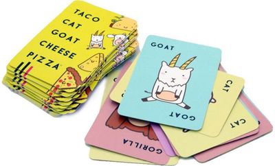 Tako, Katė, Ožka, Sūris, Pica: gerai įsidėmėk šiuos 5 žodžius! Kai tik sutaps ištartas žodis ir paveiksliukas kortelėje, ranka PLOKITE per stalo viduryje esančias kortas. Paskutinis tai padaręs turi paimti visas kortas. Laimi žaidėjas, pirmas atsikratęs visų savo kortų. Atsargiai, kad nesusipintų liežuvis!