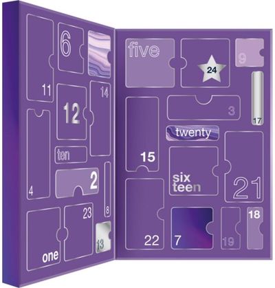 24 dovanos kiekvienai dienai laukiant gražiausių metų švenčių. Advento kalendoriuje rasite: 30 ml rankų kremo, 30 ml veido prausiklio, 30 ml veido valiklio, 50 ml šampūno, 25 g vonios perlų, 50 ml kūno sviesto, 3 ml lūpų blizgesio, 30 g vonios burbulą, 50 ml plaukų kondicionieriaus, 50 ml dušo gelį, 30 ml dieninį veido kremą, 50 ml vonios putų, 20 g žvaigždės formos muilą, 40 g vonios druskos, 50 ml kūno šveitiklį, 10 g vonios konfeti, 30 ml kūno ir plaukų dulksnos, 10 g lūpų balzamo, 100 g vonios burbulą.