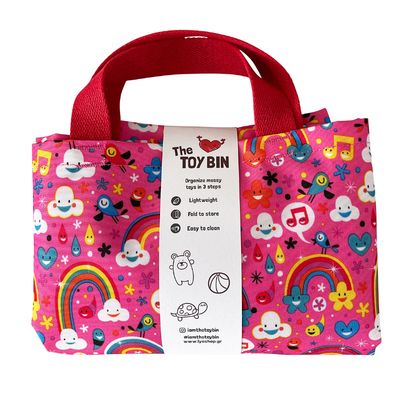 Nuostabi priemonė norint palaikyti tvarką Jūsų namuose - krepšys žaislams, kuriame patogiai ir tvarkingai galima sutalpinti visus vaikų žaislus. Rožinės spalvos su linksmomis vaivorykščių dekoracijomis. Krepšys susilanksto, todėl neužima daug vietos, kai yra nenaudojamas. Saugiai naudotis gali tiek vaikai, tiek saugusieji.