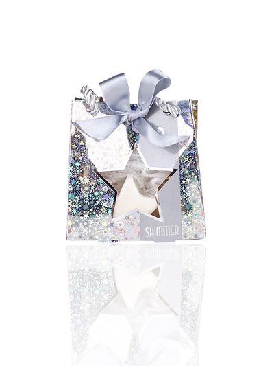 Kūno priežiūros rinkinys SHIMMER dovanų maišelyje (muilas+kempinėlė), 30+10 g