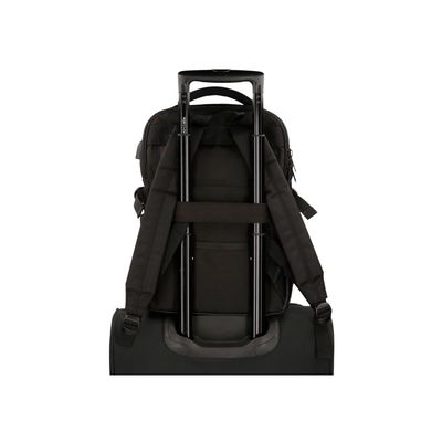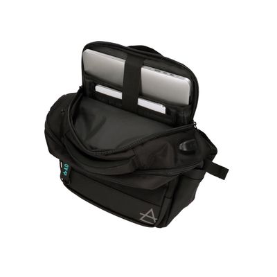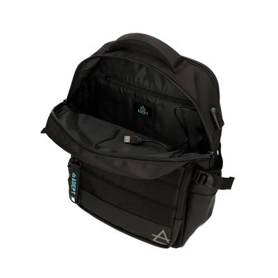 Trijų skyrių kuprinė. Pagrindinis skyrius su dviem kišenėmis, viena paminkštinta kompiuteriui, o kita planšetei. Su vidaus tvarkykle, kurioje galima laikyti 2 rašiklius, mobilųjį telefoną ir 5 korteles Su integruotu USB prievadu su laidu prijungti prie išorinės baterijos. Priekinė kišenė ir šoninės kišenės, kad būtų lengva pasiekti priedus ir prietaisus. Platūs, ergonomiški ir paminkštinti pečių dirželiai, puikiai prisitaikantys prie nugaros ir juosta, kuri padės pritvirtinti kuprinę prie lagamino keliaujant.