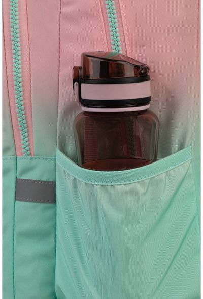 Kuprinės šonuose yra dvi atviros vandens buteliuko kišenės.