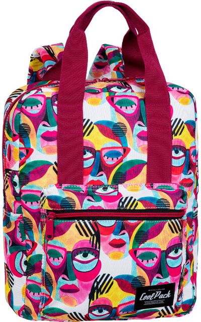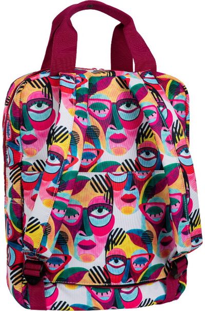 Stilinga puikiai tinkanti kelionei kuprinė-rankinė. Madingi raštai su veidų motyvais. Pagrindinis talpus skyrius didesniems daiktams, knygoms, kompiuteriui ir priekinė kišenė patogi smulkiems daiktams.