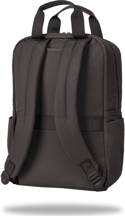 Patogi kuprinė su šoninėmis kišenėmis vandens buteliukui, pagrindiniu talpiu skyriumi didesniems daiktams, knygoms, kompiuteriui ir priekine kišene patogia smulkiems daiktams.