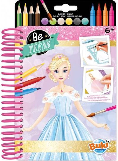 Rinkinį sudaro: 4 spalvoti pieštukai, 4 dvipusiai flomasteriai. Taip pat eskizų knygelė, kurioje yra 28 puslapiai, 6 puslapiai drabužių, kuriuos galima nuspalvinti, ir 22 puslapiai paveikslėlių.