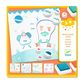 Rinkinyje yra 16 iliustruotų kortelių antspaudavimui (20 x 20 cm), 3 didelės rašalo pagalvėlės (geltonos, žalios ir raudonos) (5 x 5 cm), 7 antspaudai (3.5 x 3.5 cm) ir išsami gaminimo instrukcija.