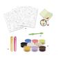 Kūrybinis rinkinys, kuriame rasite priemones sukurti paveikslams iš smėlio ir blizgučių.