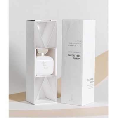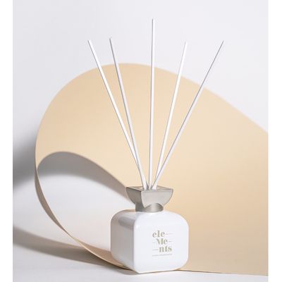 Balta minimalistinė, išskirtinio dizaino pakuotė talpina 100 ml baltą buteliuką su dailia platinos spalvos dekoro detale bei baltomis lazdelėmis (10 vnt.), surištomis kaspinėliu. Kiekviena detalė kurta galvojant apie Tave.