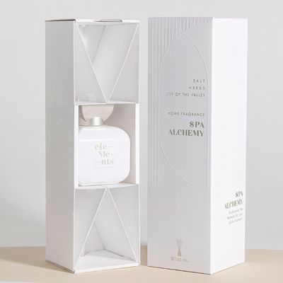 Balta minimalistinė, išskirtinio dizaino pakuotė talpina 100 ml baltą buteliuką su dailia platinos spalvos dekoro detale bei baltomis lazdelėmis (10 vnt.), surištomis kaspinėliu. Kiekviena detalė kurta galvojant apie Tave.
