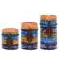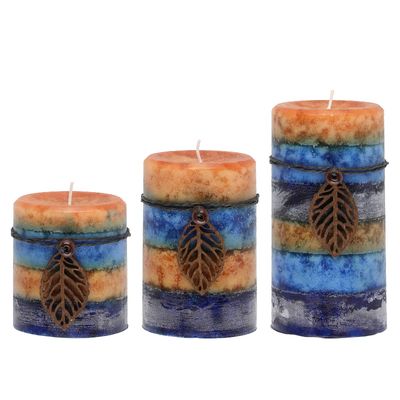 Skirtingų dydžių, elegantiškų, kvapnių žvakių rinkinys.