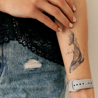 Elegantiškas laikinųjų tatuiruočių rinkinys - banginis.