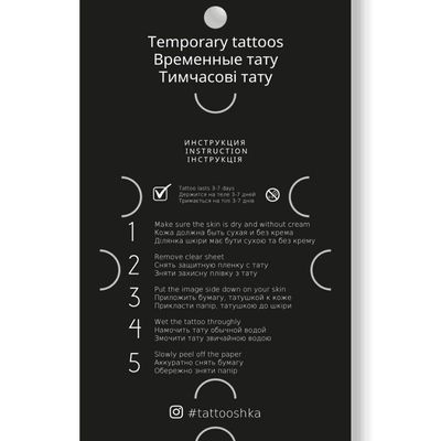 Labai lengvai klijuojasi ant odos, gerai išsilaiko, nealergizuoja. Tatuiruotė taps puikiu akcentu prie Jūsų kasdieninio stiliaus.