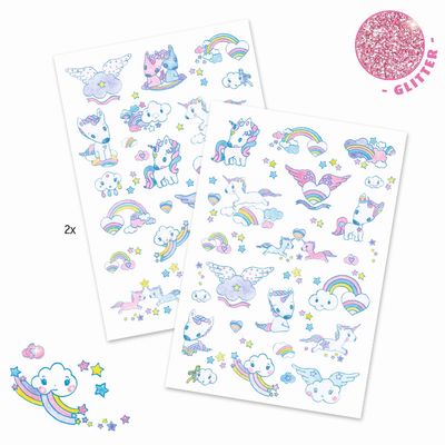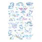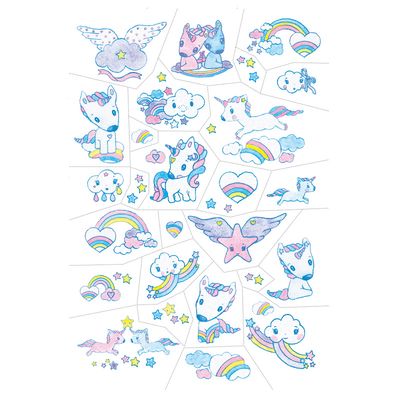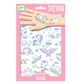 Gražios tatuiruotės vaikams. Dermatologų patikrintos ir saugios klijuoti ant odos. 2 lapai su "tatuiruotėmis": 1.Iškirpkite tatuiruotę, kurią norite uždėti. 2. Švelniai nulupkite permatomą plėvelę nuo tatuiruotės. 3. Uždėkite tatuiruotę ant odos ir sušlapinkite popierinį paviršių. 4. Tvirtai paspauskite tą vietą ir laikykite apie 30 sekundžių, tuomet atsargiai nuimkite viršutinį popierių.