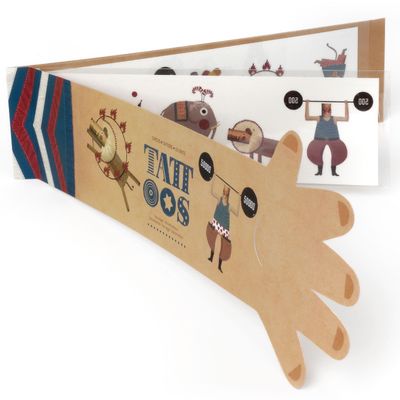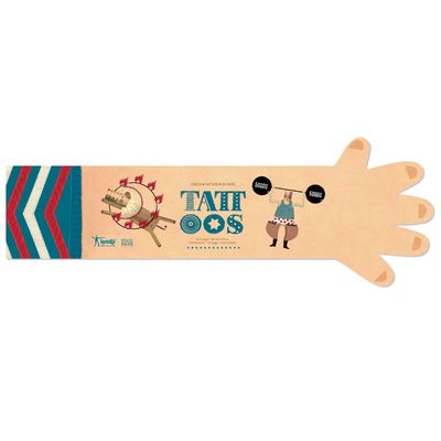 Pakuotėje rasite; 10 žaismingų cirko temos laikinų tatuiruočių.